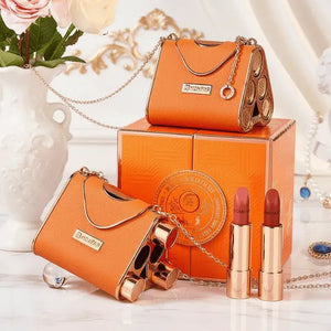 مجموعة أحمر الشفاه مع حقيبة أنثوية فاخرة