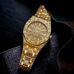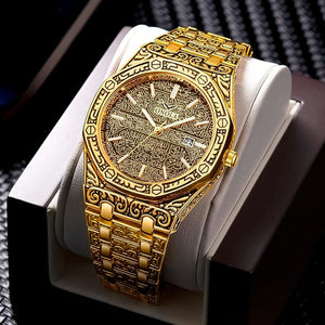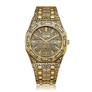 ساعة فاخرة بنقوش إسلامية فنية تُجسد الفخامة، التصميم النادر يجعلها قطعة لا تُشبه غيرها