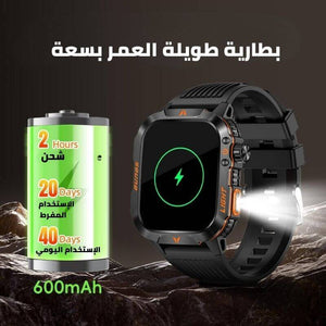 أقوى ساعة عسكرية ذكية - مكالمات، مقاومة للماء، مصباح و مراقبة صحة