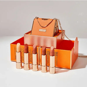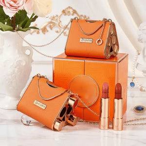 مجموعة أحمر الشفاه مع حقيبة أنثوية فاخرة