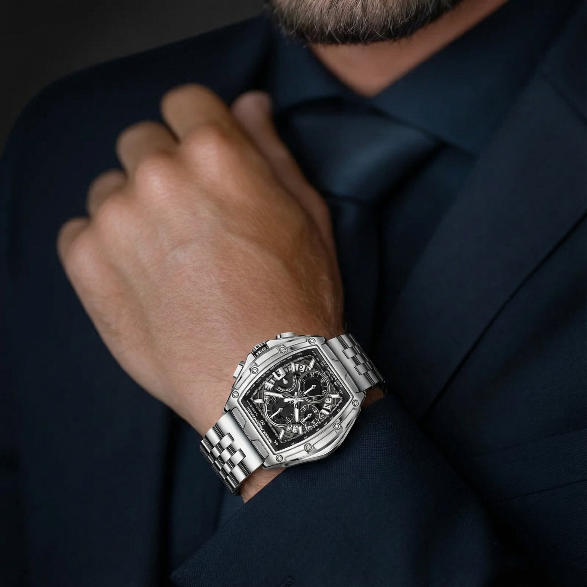 ساعة رجالية سويسرية بتصميم كلاس كاريزما صامتة تُلاحظ من أول نظرة تمنحك إحساسًا بالثبات والقوة, ليست للكل وانما للرجال اصحاب الشخصية القيادية