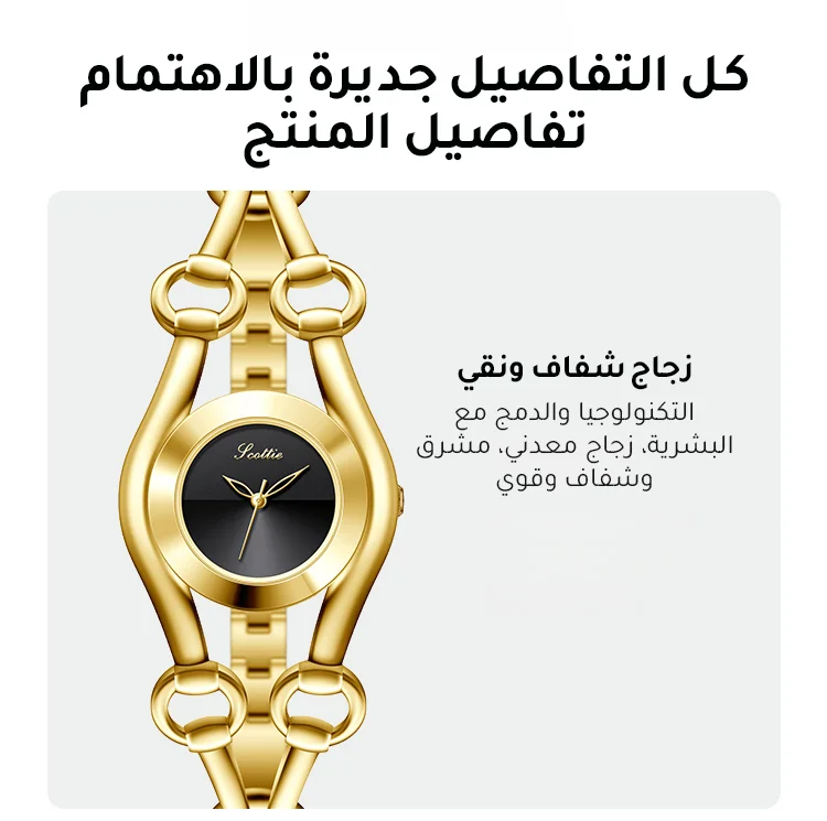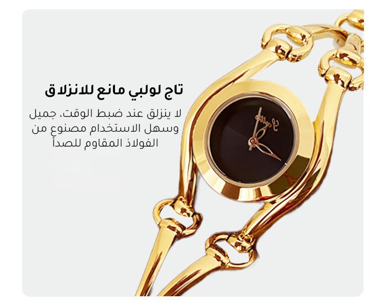 صممت لتكون أكثر من مجرد ساعة. تصميم ذهبي فاخر وسوار مبتكر يخليها قطعة مجوهرات راقية تنلبس يوميًا أو بالمناسبات الخاصة